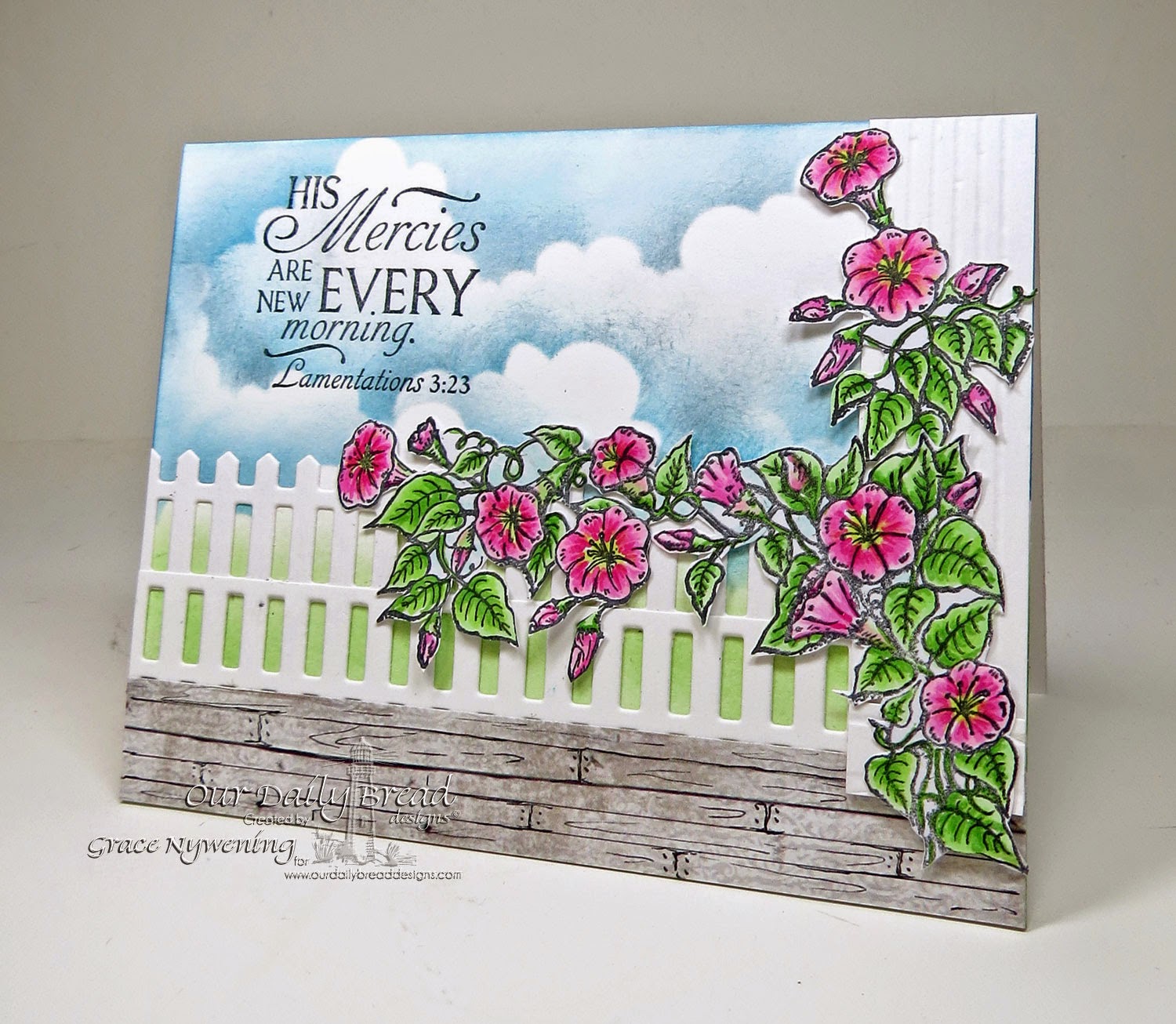 13. Cut 2 Angel Wings and one Beautiful Border with the ODBD dies, from white card stock. Cut off just 2 sections of the beautiful border, and save the rest for a card or different project.